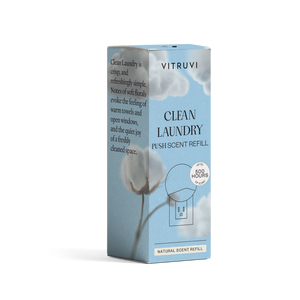 The Plug-In Push Diffuser is paired with Clean Laundry Push Scent Refill to create a fresh environment for any 200 sq.ft space. Clean Laundry is a blend of soft floral that sends whispers of the fresh air of spring and early summer. Its aroma will reset your mind and create an environment perfect to start any new year projects.