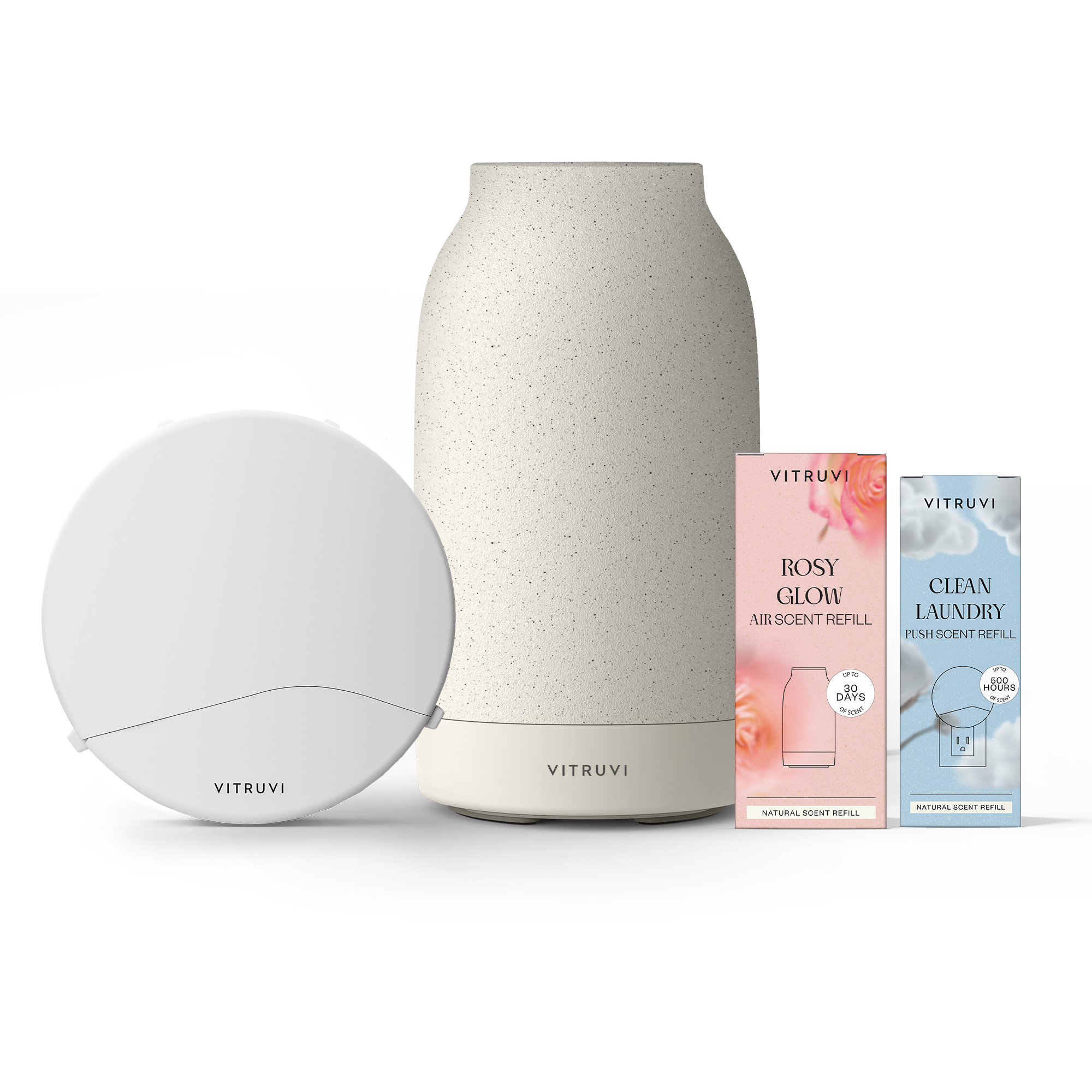 Start the new year with fresh scents to set you on the right path. This bundle contains two of Vitruvi's Best-Selling Waterless Diffusers: Air Waterless Diffuser and Push Plug-In Diffuser.