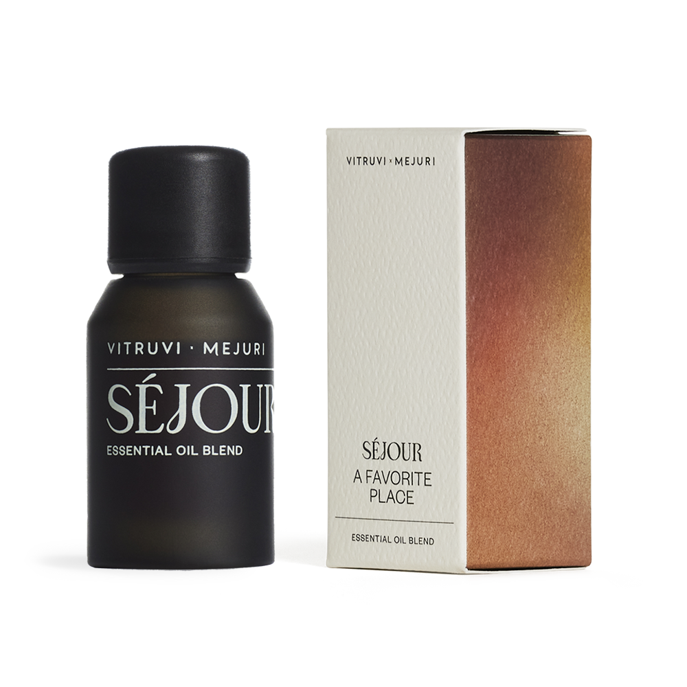 Séjour is earthy and indulgent. With top notes of Bergamot and Geranium and bottom notes of Vetiver, Vanilla, and Frankincense, it smells like gold earrings and a good book. Savor the moment—you’re home.